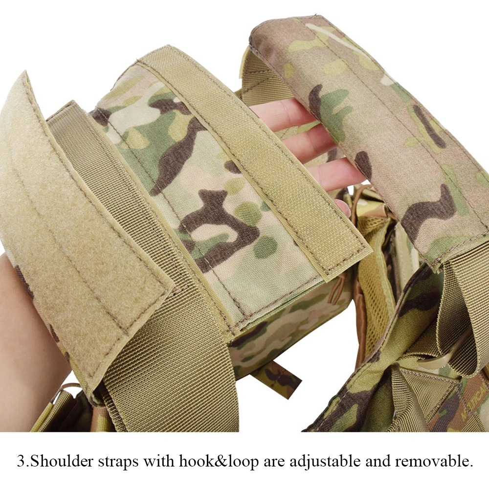1. Equipado con un pouch para cargador triple en la parte delantera del cofre, un pouch para walkie-talkie y unpouch para desechos horizontal. Básicamente satisface las necesidades de los juegos diarios de airsoft.