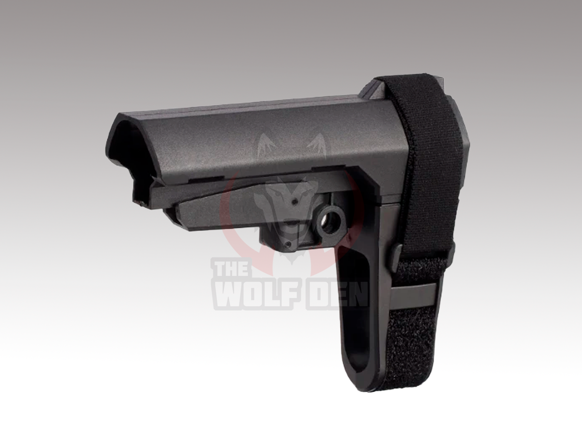 • Slim pistol dummy brace style stock with mock hook-and-loop adjustable strap.